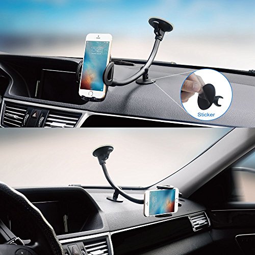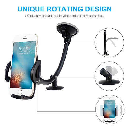 EXSHOW Car Mount,Universal Windshield Dashboard Long Arm Car Phone Mount Holder for iPhone 7/6S/6 Plus/5S/5, Samsung Galaxy S6 S5, Nexus 5X/6P, LG, HTC and All Smartphones 3.5-6 inch(Black)