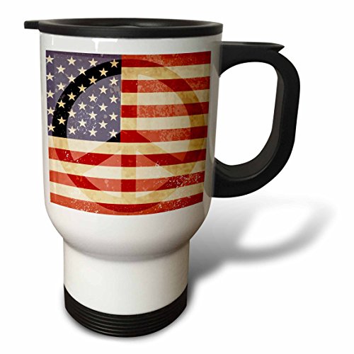 3dRose tm_186771_1 Peace Sign American Flag Stainless Steel Travel Mug, 14 oz, White