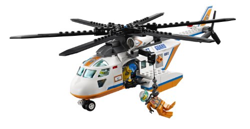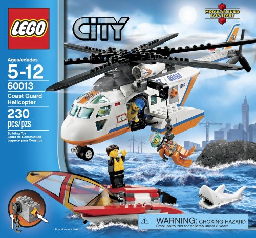 Take flight in the Coast Guard Helicopter and search the sea for the stranded sailor! Find his broken down catamaran sailboat with a falling sail function before the great white shark does! Lower the diver down with the functioning winch and help the rescuer to lift the sailor out of the water with the life preserver. Spin the rotors to take off and return him to LEGO® City! Includes 4 minifigures with accessories: pilot, diver, rescuer and a sailor. 228 pcs. Ages 5 yrs. +.
