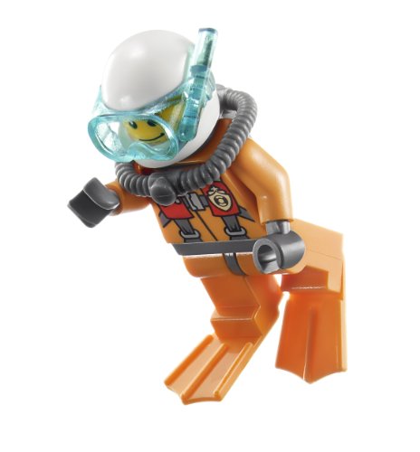 Includes a great white shark and 4 minifigures with accessories: pilot, diver, rescuer and a sailor