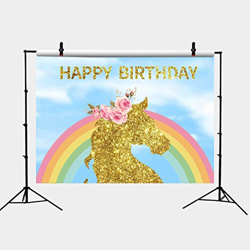 Fanghui Backdrops Photography Photo Studio Background Photographic Happy Birthday Material Vinyl 7x5ft unicorn