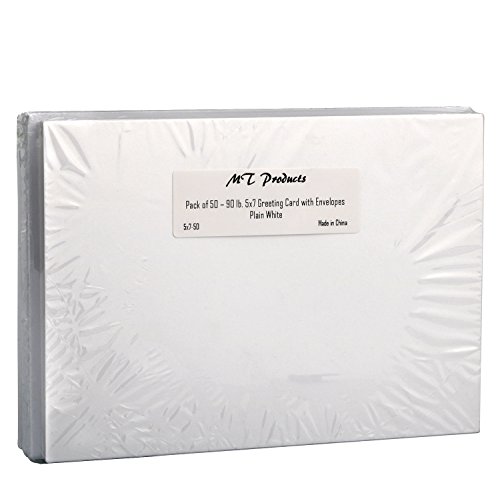 Blank White Cards & Envelopes - 50 Pack Flat, No Fold Greeting & Note Cards with Gum Seal Envelopes with Round Flaps- by MT Products