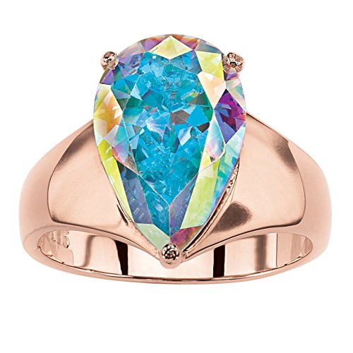 -. Title : Pear-Cut Simulated Aurora Borealis Cubic Zirconia Rose Gold-Plated Cocktail Ring