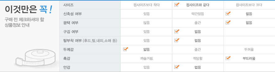 | 모니터 해상도에 따라 색상이 다르게 보일수 있으니 이점 유의하시기 바랍니다 | |