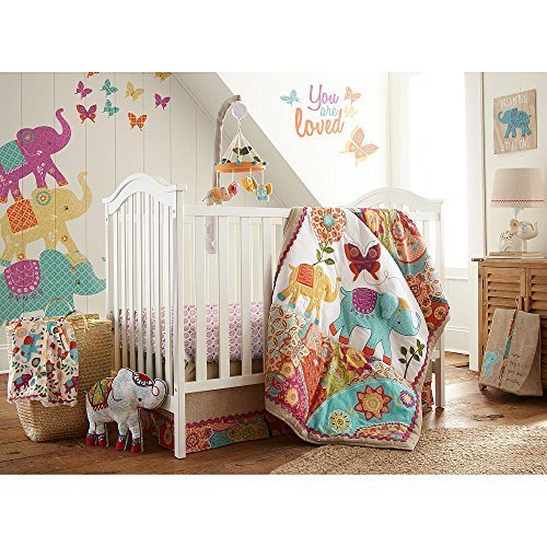 -. Feature : Features globally inspired P.R.Ints and patterns in a vibrant color-way with accents of a natural shimmering fabric. / The 5 Piece Crib Bedding Set includes a Quilt, 100% Cotton Crib Fitted Sheet, Dust Ruffle, Diaper Stacker and Large Wall Decals to create the perfect "Bohemian" look for your nursery. / ! / This set makes for a great baby shower gift! / Globally inspired P.R.Ints and patterns in vibrant colors