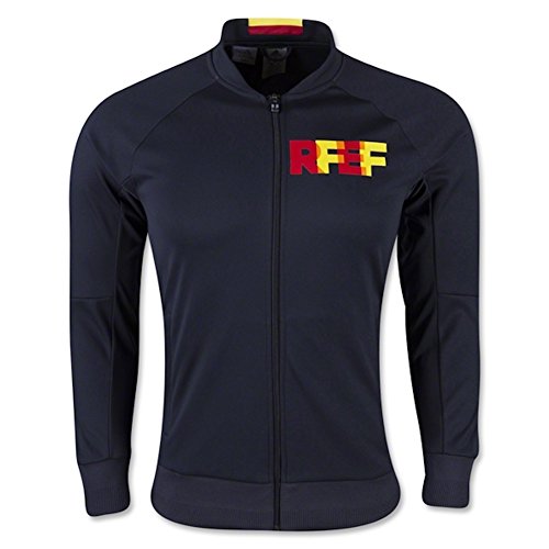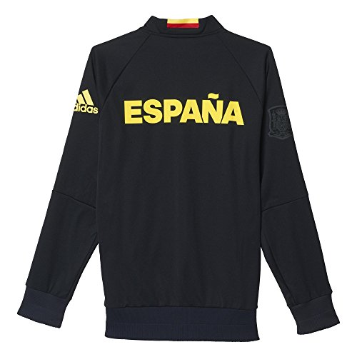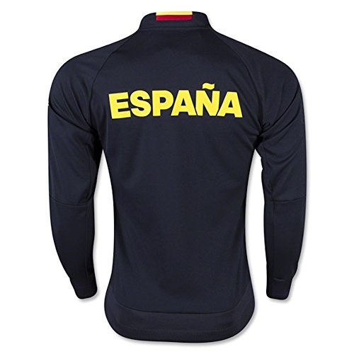 -. Binding : Misc. -. Brand : -. Color : Navy Blue, Yellow, Red -. Department : mens -. Feature : Front zip pockets; Full zip with stand-up collar / Raglan sleeves; Structured ribbing on cuffs and hem; Spanish Football Federation P.R.Inted logo on left chest / Heat-transfer graphic on upper back; wordmark P.R.Inted on left shoulder in high-density ink / This product is part of the sustainable product program: Products are made in more sustainable ways to make the world a better place; Every fibre counts: Recycled polyester saves resources and decreases emissions / Slim fit -. IsAutographed : 0 -. IsMemorabilia : 0 -. Label : -. Manufacturer : -. Model : AI4440L -. MPN : AI4440 -. NumberOfItems : 1 -. PackageQuantity : 1 -. PartNumber : AI4440 -. ProductGroup : Sports -. ProductTypeName : SPORTING_GOODS -. Publisher : -. Size : Large -. Studio : -. Title : Men's Spain Anthem Soccer Jacket (Navy Blue)