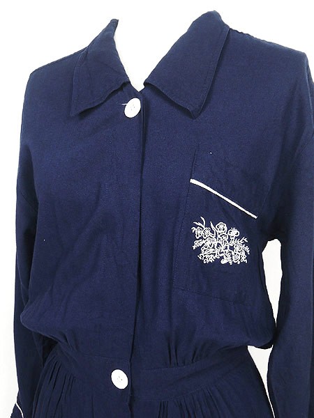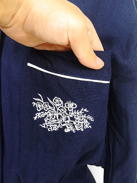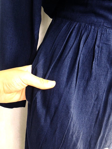 Ladies ブランド- カラー紺・白 メール便不可 コンディション★★★ 素材レーヨン 表記サイズ7/8 スタッフコメント裏地無し。後、左裾上付近に小穴あり。左袖口にヨゴレあり。 実寸サイズ 着丈 120 cm 身幅 43 cm 肩幅 41 cm 袖丈 49 cm ウエスト 26 インチ( 66 cm) ※ウエスト・ヒップ以外は平置き採寸
