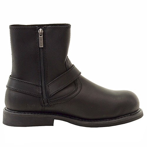 Studio : Harley-Davidson Footwear Publisher : Harley-Davidson Footwear Binding : Shoes Product Description A steel toed variation of the fan favorite Scout men's leather harness boot with a large metal Harley-Davidson bar and shield top side, full grain leather, a reliable Goodyear welted outsole construction, and ASTM compliant metal safety toe caps. 0