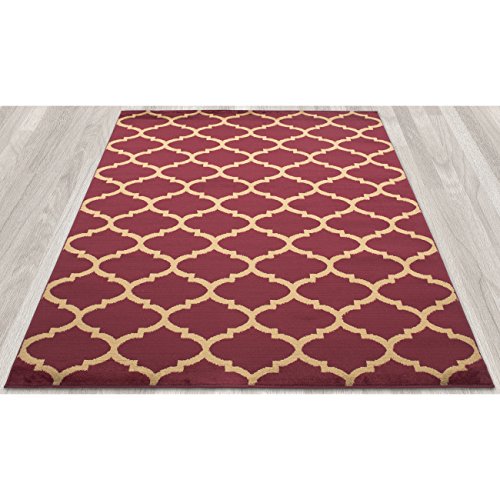 - Feature : Design: Contemporary-Moroccan Trellis / Colors: Dark Red, Beige / Size: 5'3" X 7'0" / 100% Polypropylene Heatset pile,Power Loomed Construction, Soil and Stain Resistant, Easy to Vacuum Low Pile / Long lasting quality with vivid colors that wont fade away