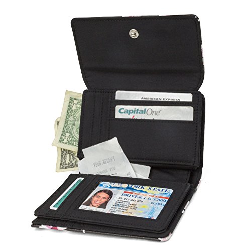 A Small Womens RFID Blocking Wallet with Tons of Storage. Smaller than our File Master clutch this wallet has 18 credit card pockets, 1 picture ID window, bill fold pocket and a zippered change pocket.