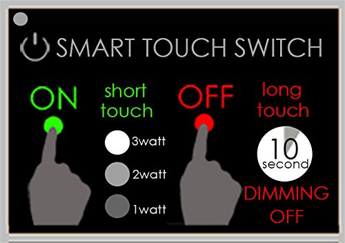 -. Feature : 3W energy-saving LEDs with average rated life of 20,000 hours / Contemporary aluminum arc arm design / 3-level touch dimming switch / Includes "dim to off" feature / 13 inch height and slim profile ideal for small workspaces