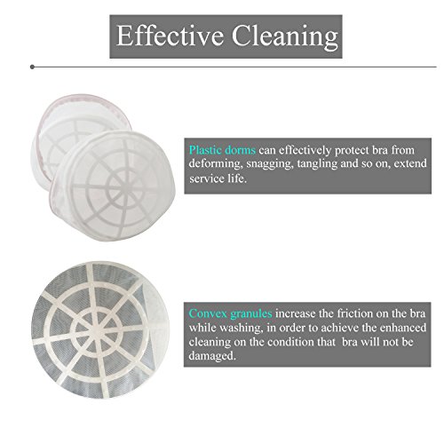 - Hard plastic domes protect shape of bra, inside little nubs on the frame giving bra a more thorough wash without damage. Durable mesh laundry bag.