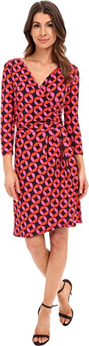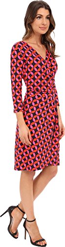 Surplice neckline. Three-quarter sleeve design. Gathering at left waist creates a faux wrap look. Straight tulip hemline. 95% viscose, 5% spandex. Hand wash cold, dry flat. Imported.