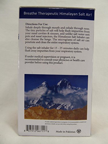 Studio : Life of Balance Publisher : Life of Balance Binding : Health and Beauty Product Description For relief from: Breathing difficulties Allergies, cold flu symptoms Shortness of breath Sinus conditions Some types of snoring The effects of smoking and dehydration The tiny particles of salt help flush impurities from your nasal cavities and sinuses, and unlike like salt water neti pots and nasal injectors, the Himalayan Salt Inhaler can also cleanse the lungs. The micrograms of salt air can penetrate and clean the entire respiratory system. The amount of salt is so small it does not affect blood pressure or cause problems with thyroid conditions sensitive to iodine. 0