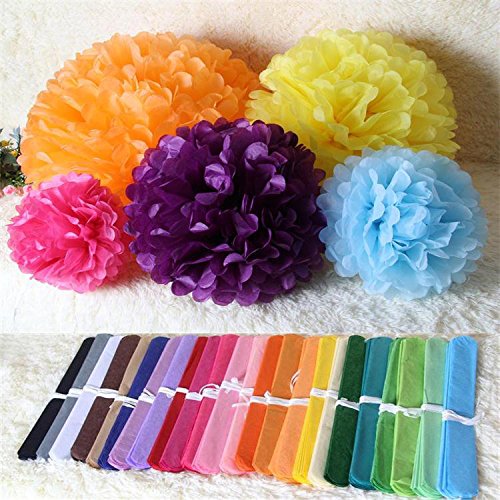 Easy to fluff up with instructions Each pom pom comes with white ribbon for hang in.Perfect for Birthday, Weddings, Christening Baby shower, Wedding Photo Pops, Nursery decorations or any other celebration.