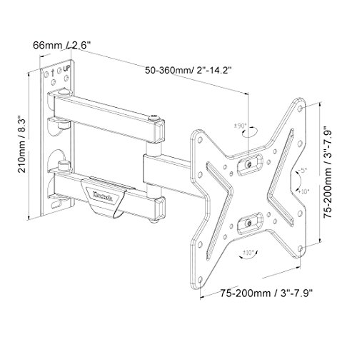 -. Feature : This heavy-gauge TV mount has high standards, with adaptor holding 14" - 50" TVs (note: box says 14-42 in, VESA and TV weight determine support) weighing up to 55lbs. Don't worry, we'll do the heavy lifting: Each and every Loctek mount is tested to hold more than 3 times the weight it's rated to. Safety Tested / you can fix the minor error while installation within ±3 / Tilt angle:-5°-10°. our mount can tilt and swivel, making it easy to find the best viewing angle and reduce glare from lights or windows. / with adaptor VESA:100x100mm 200x100 mm 200x200 mm 400x200 mm 400x400 mm / Cable Management System, gathers and routes your cable neatly.