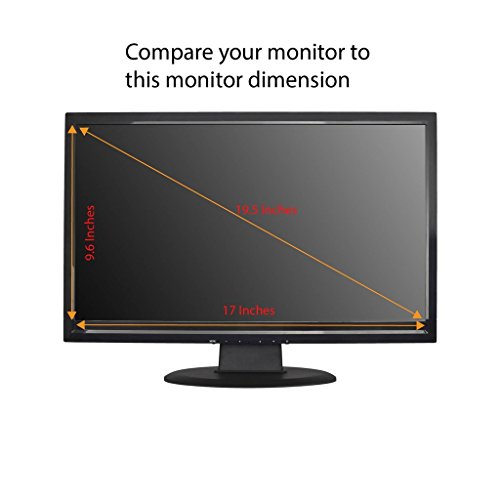 Actual Privacy Screen Filter dimensions are 19.5 inch measured diagonally. 17 inch width x 9.6 inch high. Compare your screen dimensions against our dimension before purchasing.