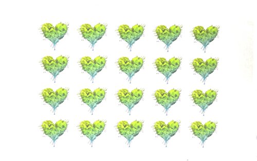 - This large cotton tea towel has a repeat print of watercolour hearts in shades of turquoise and green