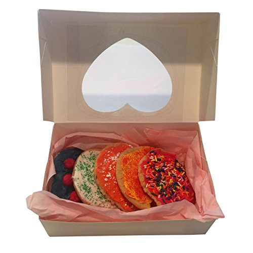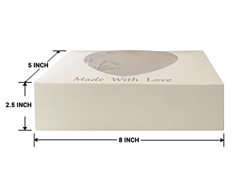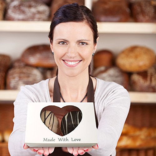 White Bakery Boxes With Window, “Made With Love” with Heart Shape Window, Perfect for Take Out, Pastries, Cupcakes, Cookies, Bake Sales, Crafts & More 8 x 5 x 2.5", 15 Pack, 80% Recycled Content