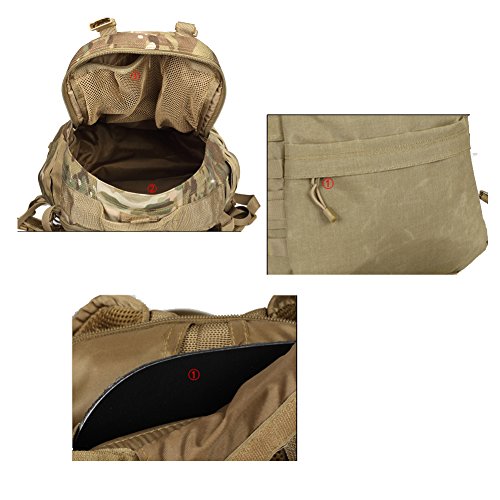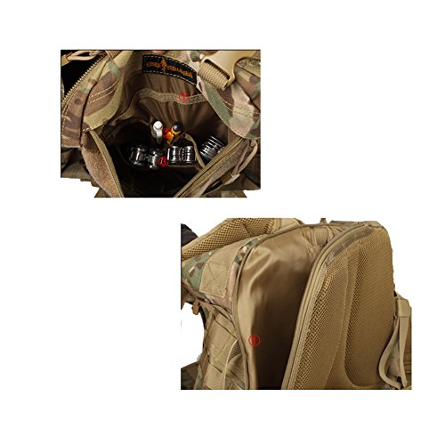 - Feature : Outer Material: durable 1000D nylon / Dimension 35 W x 50H x18 D CM Capacity: 55 L Weight: 1.5 kg / Durable water resistant anti-scratch 1000D nylon, strong fully adjustable padded back straps, detachable padded waist strap, high quality hardware, tidy and neat stitch , military design, great MOLLE system,all make this bag a perfect climbing camping travel backpack. / The bag is delicately designed, the high quality 1000D nylon fabric and YKK zipper also make it much higher end. YKK¡¡is the originator of the zipper industry, representing the industry standard£® / This stylish bag may be a good choice as a mountain climbing bag, a camping bag or a hiking bag. The durable quality is excellent and the classic style is timeless, it promises all value for every penny you spend.