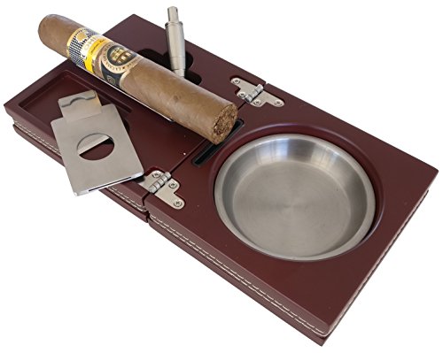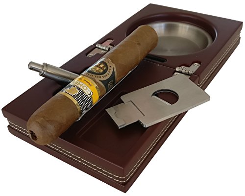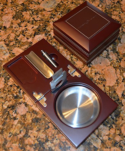 -. Title : The Popocatépetl - Cigar Ashtray with Cigar Cutter and Punch. (Leather)