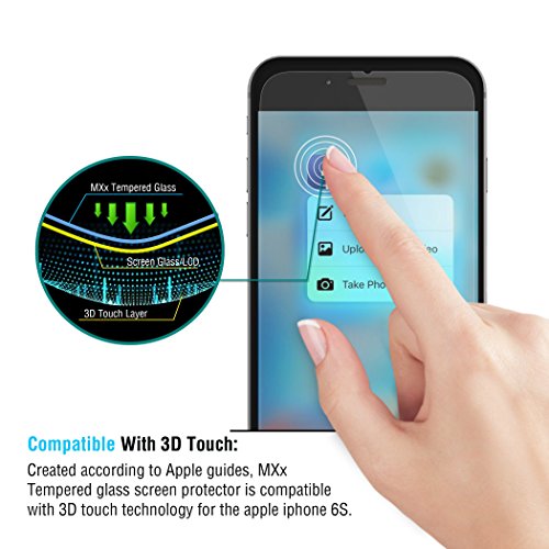 -. Binding : Wireless Phone Accessory -. Brand : MXX -. Feature : DESIGNED WITH HIGH QUALITY 0.3mm thick premium tempered glass with rounded edges exclusively for iPhone 6S Extreme high hardness / SUPPORTS 3D TOUCH; Resists scratches up to 9H (harder than a knife) high -response; high transparency; dust-free; fingerprint-free; one-push super easy installation, bubble free / ATTENTION; Due to the round edge of the iPhone 6S, the screen will NOT cover the full screen, but only the flat area (please refer to the product images) / RETAIL PACKAGE INCLUDES; 1- MXx tempered glass screen protector, 1 MXx cleaning cloth, 1 alcohol pad, 1 smoothing card, 1 instruction slip / NO HASSLE LIFETIME REPLACEMENT WARRANTY; MXx beautiful screen protector with perfect HD Display that ensures maximum resolution display TrueTouch Sensitivity and clarity for amazing look and feel with maximum protection from light scratches and impact drops. Our warranty ensures a replacement without all the hassle. -. Label : MXx Accessories -. Manufacturer : MXx Accessories -. PackageQuantity : 2 -. ProductGroup : Wireless -. ProductTypeName : WIRELESS_ACCESSORY -. Publisher : MXx Accessories -. Studio : MXx Accessories -. Title : IPHONE 6S TEMPERED GLASS (1-PACK) (2-PACK)