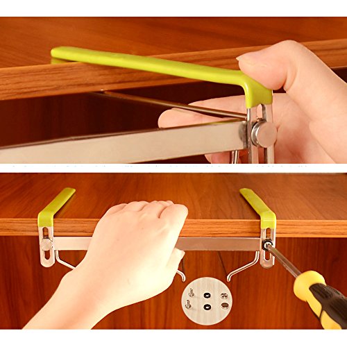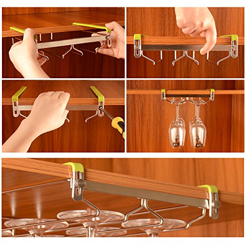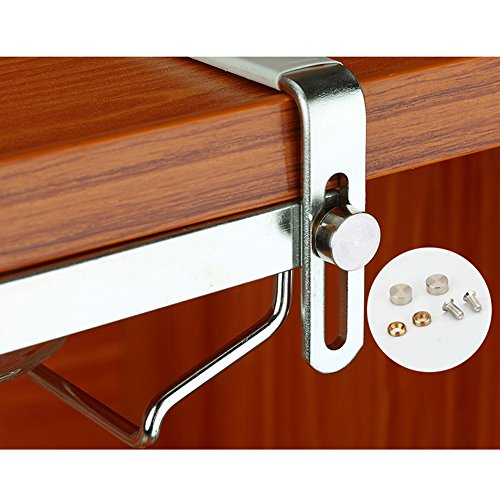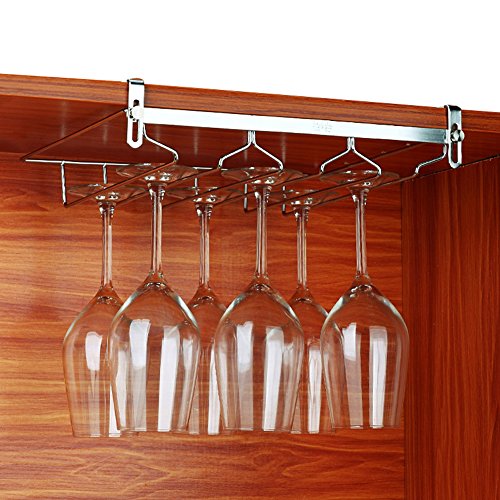 Studio : VOBAGA Publisher : VOBAGA Product Description Features: 1. Store and protect your delicate wine glasses, champagne flutes and other glassware with this hanging stemware rack! 2. This versatile storage rack can hold a variety of glasses and is great for entertaining. 3. Bring new function to your existing cabinets and storage. 4. Stylish, contemporary design looks great with a variety of cabinet styles 5. Can hold up to 12 glasses with bases up to 3 1/2 inches 6. Fit for the thickness of the cabinet within 1.18 inches (3cm). 7. Don't need to drill holes in the cabinet to protect your cabinets from any scratches or damage,The stemware holder is so easy to install and removable, it just slides right over your existing shelf. Includes: 1 x Stainless Steel Stemware Rack 6 x Screws and Anchors 2 x Bracket This rack is fully assembled but needs to be mounted. Installation is easy with the included hardware. Bring new function to your existing cabinets and storage! Stylish, contemporary design makes this rack look great with a variety of cabinet styles and finishes. A simple accessory to help you organize your glassware for clutter free, convenient storage. Fits underneath almost any cabinet. Get creative and try hanging it on a ceiling, in an armoire, storage cabinet or hutch that you've repurposed. Combine multiple racks for additional storage. Works great in the kitchen, dining room, bar or anywhere you have an overhang Whether you are entertaining friends or relaxing alone, when enjoying the beverage of your choice this rack will keep all of your favorite glasses organized and ready for quick access. Entertain like a pro - Add this classic hanging stemware rack to your home furniture collection. 0