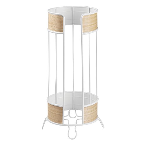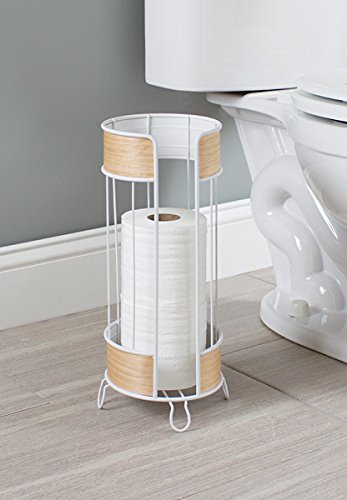 mDesign Free Standing Toilet Paper Roll Holder for Bathroom Storage - White/Light Wood Finish