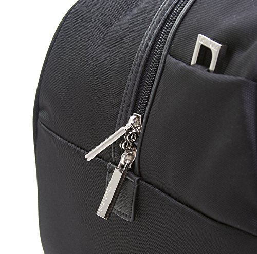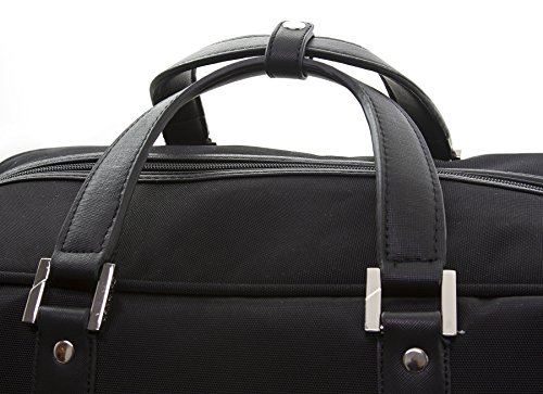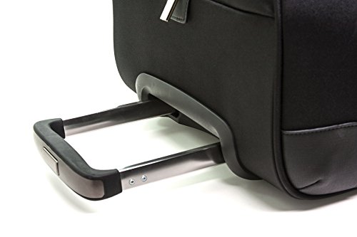 -. Feature : High quality and stain resistant nylon body fabric with saffiano trims / Fully-lined interior / Aircraft aluminum trolley system is ultra lightweight / In-line skate wheels for smooth maneuverability / 12.5x12x25