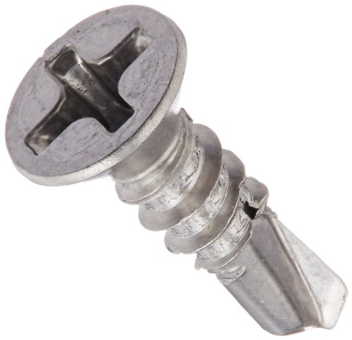 410 Stainless Steel Self-Drilling Screw, Plain Finish, 82 Degree Flat Head, Phillips Drive, #2 Drill Point, #6-20 Thread Size, 1/2" Length (Pack of 50)