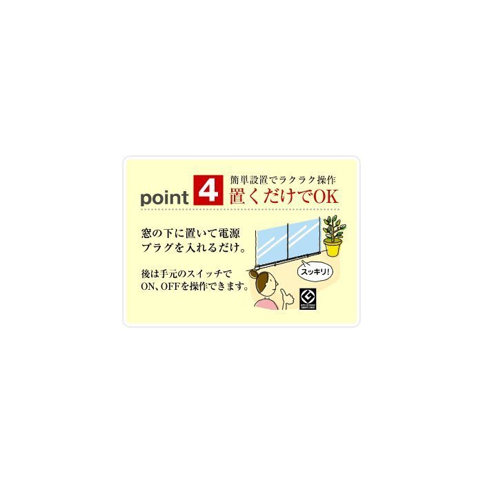3)에너지 절약 창으로부터의 냉기를 셧아웃 하는 것으로,방 전체를 균일하게 덥게 하고, 체감 온도를 2℃업 합니다.