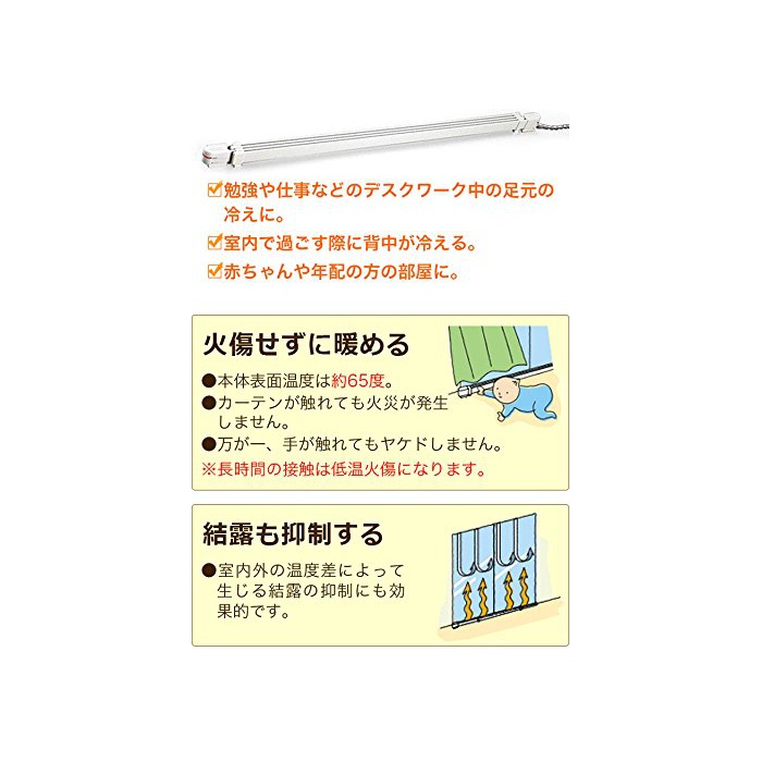 4)안전 설계 본체의 표면 온도는 약60℃입니다.커튼이 닿아도 화재에는지지 않습니다
