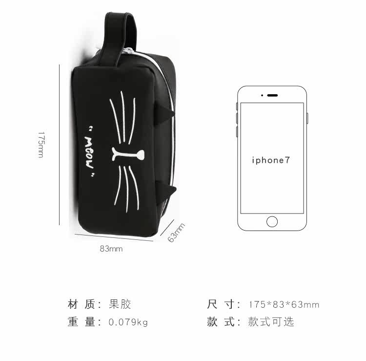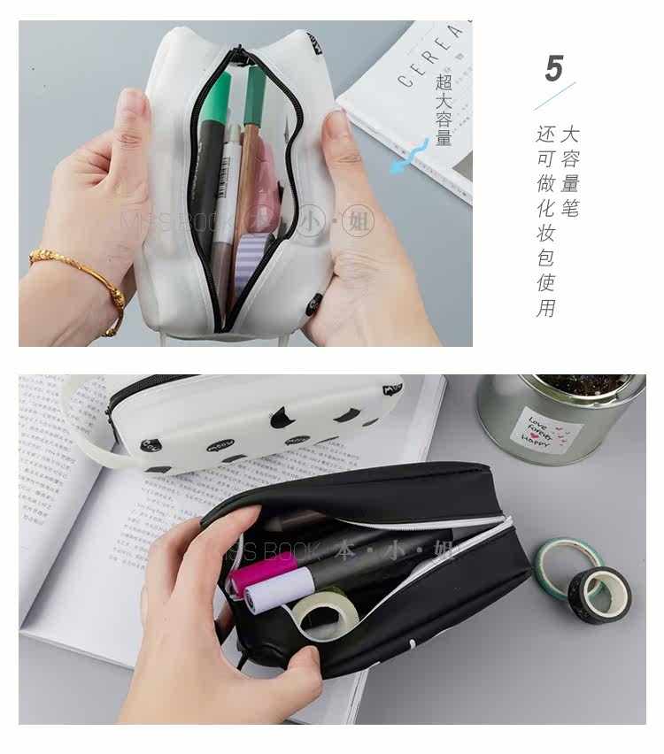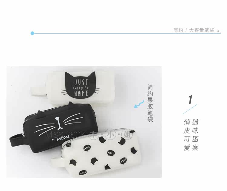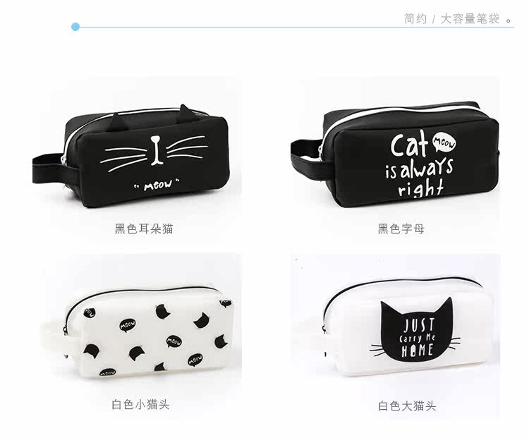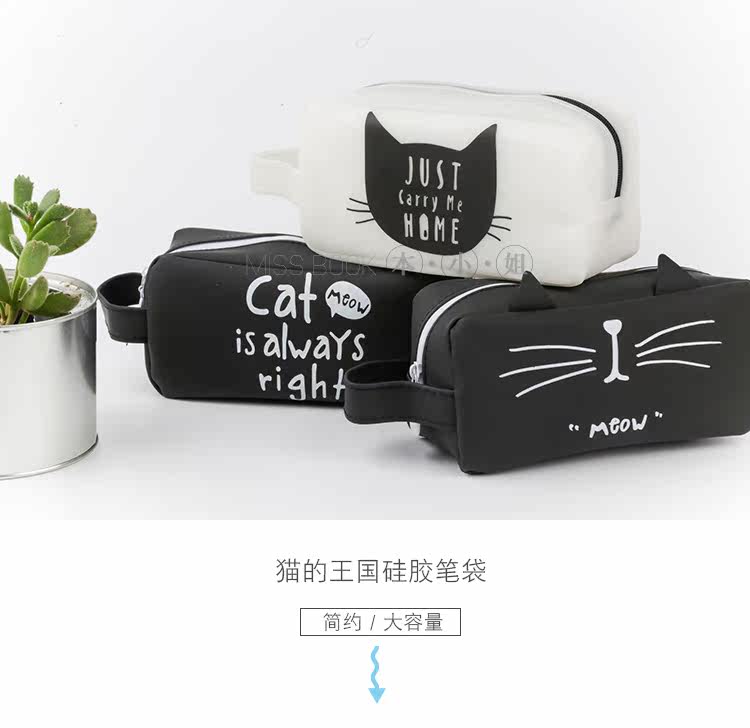 创意猫的王国硅胶笔袋 学生手提铅笔袋 大容量文具收纳袋