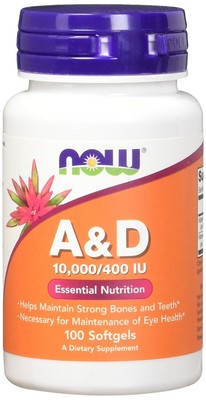 NOW Foods Vitamin A & D 10,000 / 400 IU 100 Softgels - FRESH PHARMACY STOCK!price is including custom tax(for Malaysia only)!