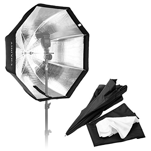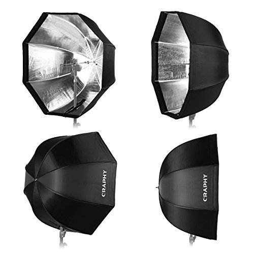 Studio : CRAPHY Publisher : CRAPHY Binding : Electronics Product Description Double-Use in One Body Craphy's 80cm/32' Octagon Umbrella Softbox is designed to diffuse a strobe flash, giving you a softer light that eliminates harsh shadows and highlights. You can use it as a regular reflective umbrella without the white diffuser cloth. The silver interior can brighten the light and ensures a high degree of light efficiency. Or you can add a white cloth to use it as a softbox to create a more controllable and directional light for portrait photography.