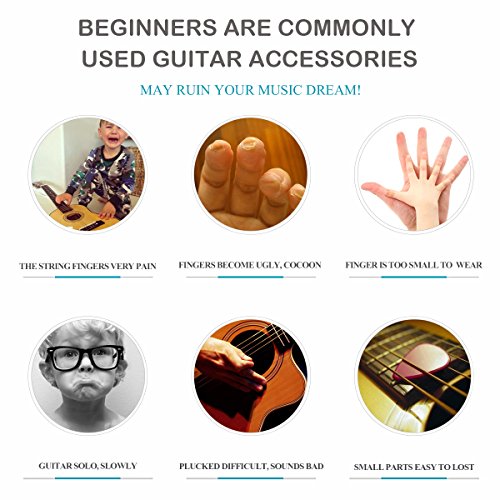 GUITAR BEGINNERS ESSENTIAL-4*Finger&thumb picks,10*Guitar finger protector,5*Pick,1*Picks holder,let you and your child easily to learn guitar or other instruments, start your dream of music