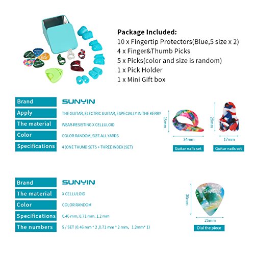 SUNYIN Finger Thumb Picks,Guitar Finger Protectors,Picks,Pick Hoder,Gift Set Kit useful for Acoustic Guitar Starter & Other Strings Instrument