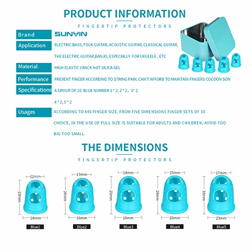 COMFORTABLE PROTEC YOUR FINGER-Silicone fingertips protectors,finger guards,say goodbye to the pain trouble,5 kinds of sizes for your choice,these finger protectors for guitar players and useful for acoustic guitar violin viola banjo mandolin ukulele uke cello and other strings instruments