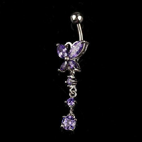 -. Title : Doinshop New Useful Cute Nice Crystal Butterfly Dangle Ball Barbell Bar Belly Button Navel Ring