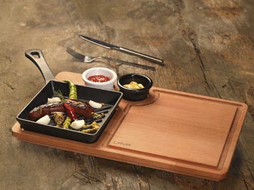 Lava’s Square Mini Grill Pan brings the delicious flavors of your outdoor grill to your stovetop. The 6 inch x 6 inch square enameled cast iron grilling surface of this single-serve pan ensures meats, fish or vegetables grill evenly and perfectly every time. The unique design offers interesting single-serve grilling and table presentation options for many dishes. The square shape and curved handle allows you stack up to four pans together in your oven or on your outdoor grill for finishing. ECO premium cast iron grill pans offer a tough matte enamel finish that is dishwsher safe, never needs seasoning and is incredibly durable. Uniquely designed grill bars heat uniformly for superb cooking performance and offer easy cleanup.Feature