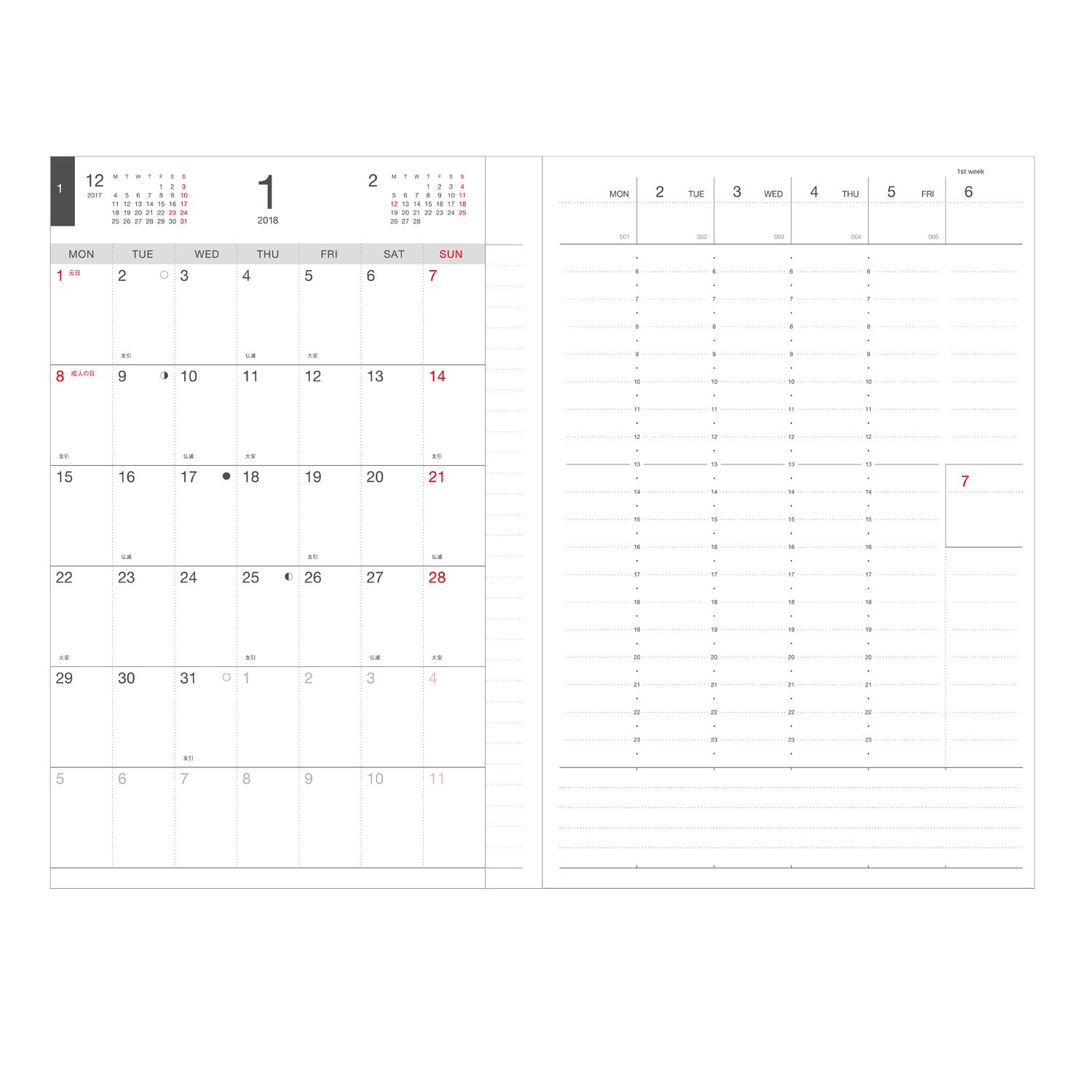 Weekly pages are available in two types that you can choose according to your preferences and usage.