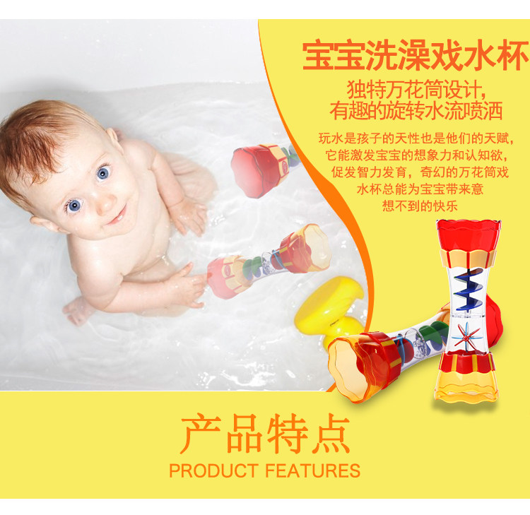 夏季热卖Cikoo宝宝戏水杯玩具 洗澡旋转水流水漏柱戏水万花筒花洒