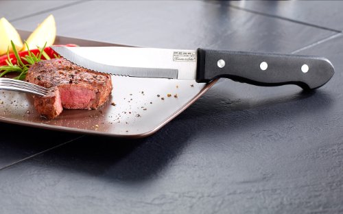 -. Feature : 6 superscharfe Steakmesser mit extra tiefem Wellenschliff und glatt geschliffenem Klingenteil • Klingenstärke: 1,5 mm • Lieferung in dekorativer Präsentverpackung / Ideal für Grillabend, Festtags-Braten u.v.m. • Perfekt ausbalanciert für optimale Handhabung / Durchgehend aus rostfreiem Spezial-Edelstahl 420 gefertigt • Maße: 255 x 31 x 17 mm, Klingenlänge: 13 cm, Gewicht: 90 g / Ergonomische Griffe aus robustem Polypropylen, 3-fach vernietet • Zum Reinigen in der Spülmaschine geeignet / Inklusive deutsche Anleitung