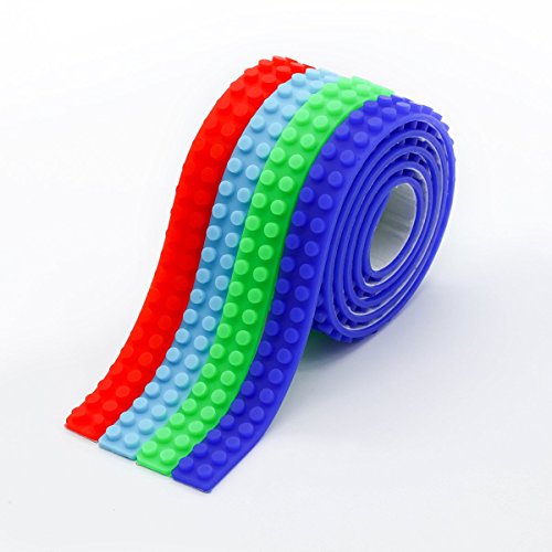 Cut-to-size,re-position to fit anywhere for custom design. Build on curved surfaces, around corners, even other toys! Tape allows you to quickly and easily attach your building blocks to virtually any object or surface! Flexible,cuttable,bendable,shapeable. Length: 1 Meter or 3.2 Feet of each color in length.