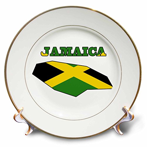 3dRose cp_58778_1 Jamaican Flag in The Outline Map and Word Jamaica Porcelain Plate, 8-Inch