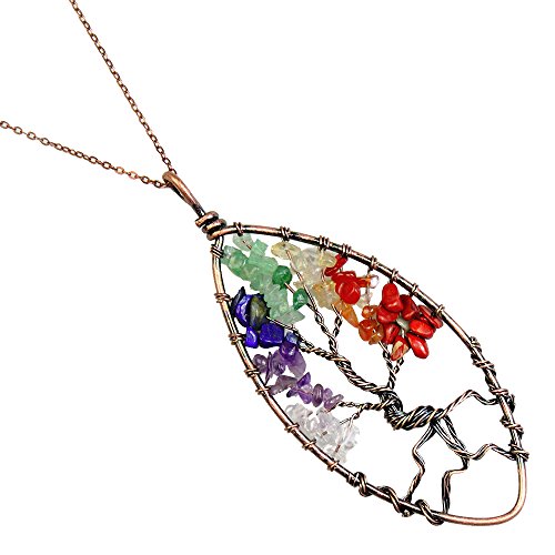 -. Feature : 1.Chain Length:18-19inches,Pendant Size:2.99 * 1.46 inches. / 2.The chakras are the centers in our bodies in which energy flows through.Root / Sacral/ Solar Plexus / Heart /Throat /Third Eye /Crown Chakra.This necklace each stone corresponds to a chakra, corresponding energy release. / 3.Handmade,Guarantee Natural Semi Precious Stone,nickel free and lead free. / 4.These handmade pendants are made of tumble stones ,wrapped as a tree look,wires as the branches,stone as the leaves .We called these pendants "Tree of Life" pendant,this symbolizes the interconnection of life and the flow of creation,also known as The Tree of Knowledge, is depicted as a tree with many branches, and roots, illustrating the idea that all life on earth is related, and interconnected.They fit for necklace or other jewelry ,and fit both women and men. / 5.These pendants are also good for healing.The chakra stones are used to balance the chakras on a daily basis and to enhance chakra healing.