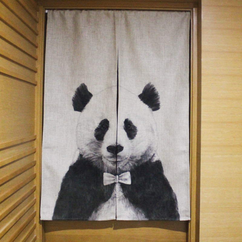 熊猫绅士创意棉麻布艺黑白门帘 隔断帘卧室厨房可爱儿童房布帘