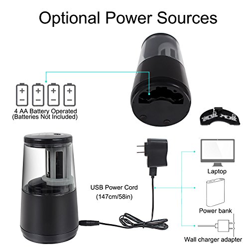 Electric Pencil Sharpener, Heavy-duty Helical Blade to Fast Sharpen, Auto Stop for Pencils (6-8mm), USB or Battery Operated in School Classroom/Office/Home (USB and AC Adapter Included)