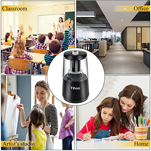 【Powerful Motor】With heavy-duty and durable helical blade, fast sharpening for 5-10 seconds and auto-stop working at a perfect point to protect pencil lead and dispose the broken lead intelligently. Fit for sharpening colored pencils, lead pencils, charcoal pencils, eyebrow pencils.