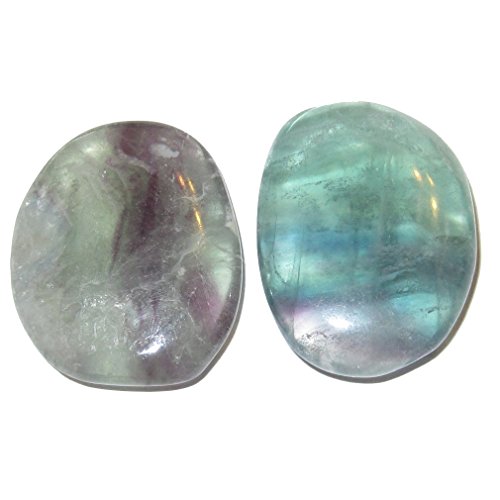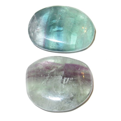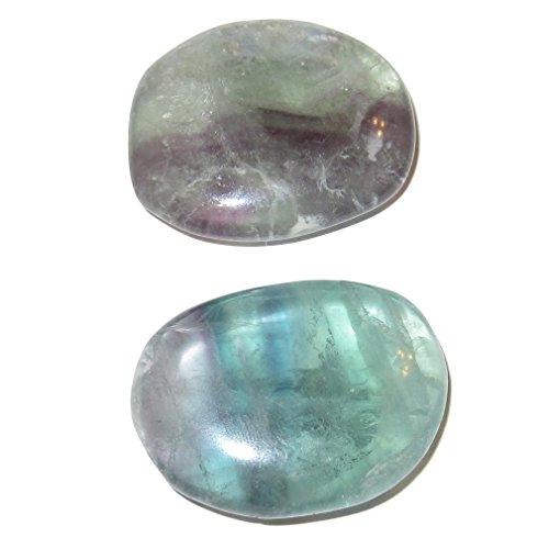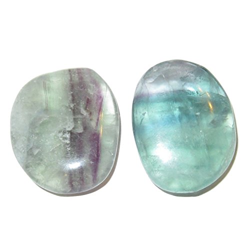 Fluorite Polished Stone 50 Pair of Clear Green Purple Striped Worry Stress Release Crystals 1.3" (Gift Box)